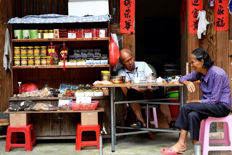 土楼二楼的谷仓每年都会存满收获的稻谷、地瓜干等粮食,还有自制的咸菜、凉粉等,楼内饲养家禽家畜,柴草充足,每座楼院内都有水井。