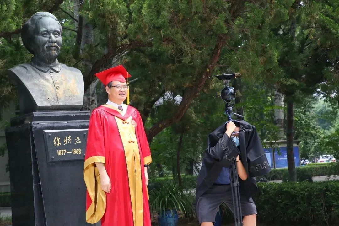 学校根据大数据信息,选取了30余名身高体貌各不相同的留校的中外学生。在样板照片采集时,学校组织这些“模特”穿着不同学位服按照学位、学科和个人特点进行排列组合,在三个学位授予地点与校长拍摄合影。