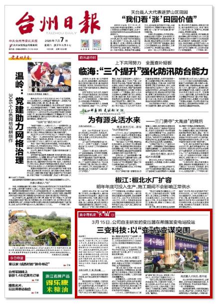 台州日报头版报道
