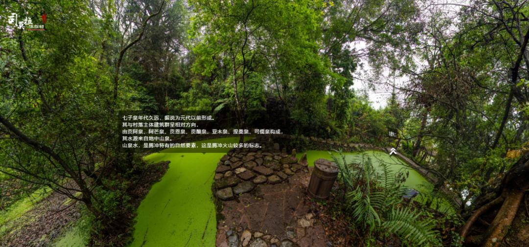 七子泉年代久远,据说为元代以前形成。其与村落主体建筑呈相对方向,由阿泉、阿芒泉、贡恩泉、贡酿泉、亚木泉、涅桑泉、司儒泉构成,其水源来自地中山泉。山泉水,是腾冲特有的自然要素,这是腾冲火山较多的标志。