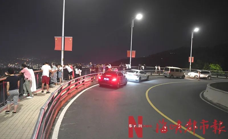 7月6日晚9时30分,记者来到位于X190县道开往宦溪镇的分路口。该路段设有近百米的观景平台,可俯瞰福州市区夜景,不少市民在这里拍照合影。