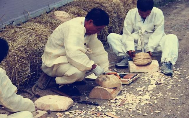 假面制作是假面舞表演的必要前提。朝鲜族假面舞的假面大体上分为只挡住脸部的“假面”和挡住头部全体的“套头”。假面原来是在原始时代以防护或祭司为目的的道具,后来演变成以演戏为目的的造型艺术品。不管是“信仰假面”还是“艺能假面”,都是在人们长期的生产劳动过程中逐渐形成发展,是古代人民图腾意识及农耕文化的产物。从朝鲜半岛三国时期到朝鲜王朝时期,假面是“剑舞”、“处容舞”等宫廷舞蹈和民间假面具、农乐舞、踩地神等乡土艺术中必不可少的演出道具。朝鲜族假面舞的假面主要用纸、布、木头、瓢等材料制作。传统的假面制作方式有两种:一是直接在木头或瓢上雕刻后再进行着色;二是先用泥土塑造独特的脸型,再层层贴上纸或布并进行着色,最后刮掉已变干的泥土。后来,为了减少假面重量,泡沫逐渐取代了木头和瓢。大多数朝鲜族假面舞的假面都夸张、生动、滑稽,这有利于突出朝鲜族假面舞独有的戏剧性和思想性。目前,在延边地区只有安图县拥有这一技能。