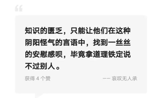 阴阳怪气,毫无疑问是在加重网络戾气:反正你也不可能顺着网线来打我,偶尔在网上阴阳怪气一番也蛮爽的。