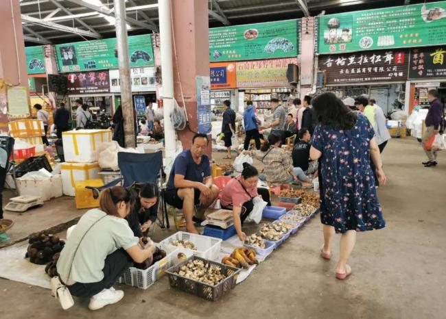 因此,当前市场内的商家、市民及采买商户都较上月增加了不少,消费者的购买热情比较高涨。云南木水花野生菌交易市场里,来往的市民手里几乎都提着一到两种野生菌。