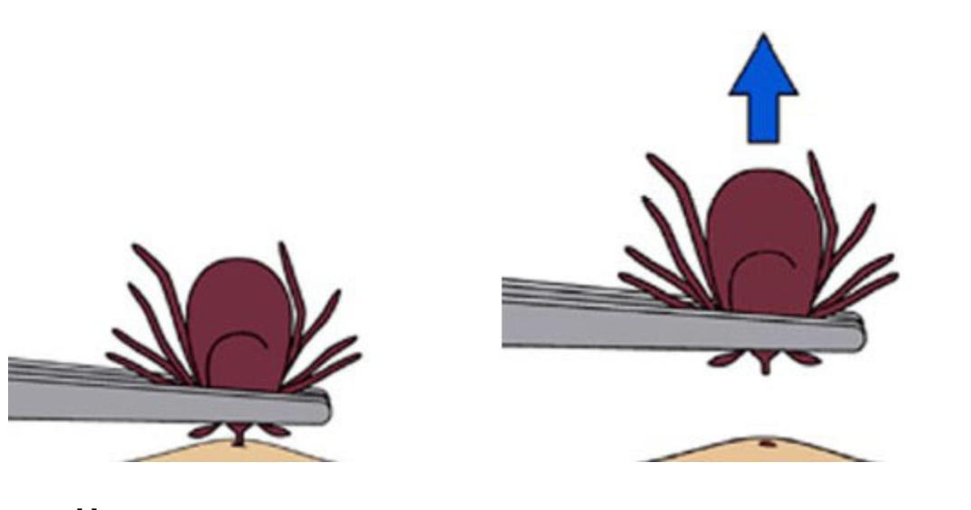 1、用镊子夹住蜱虫的头,垂直向上拔出,注意不要把口器残留在皮肤内。