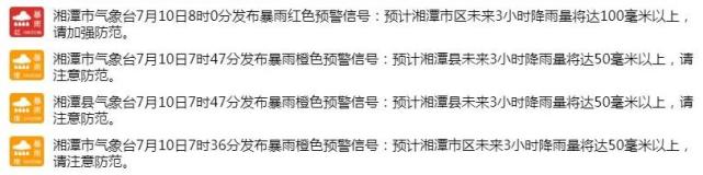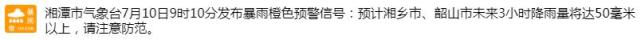 今天(7月10日)早晨,湘潭连发暴雨预警!