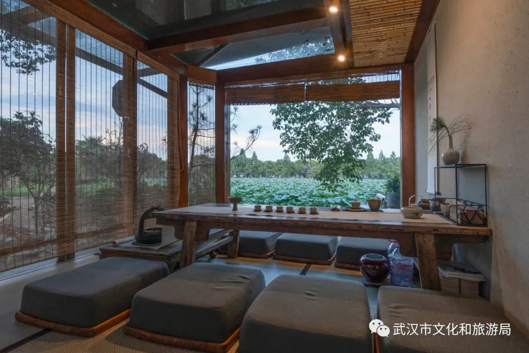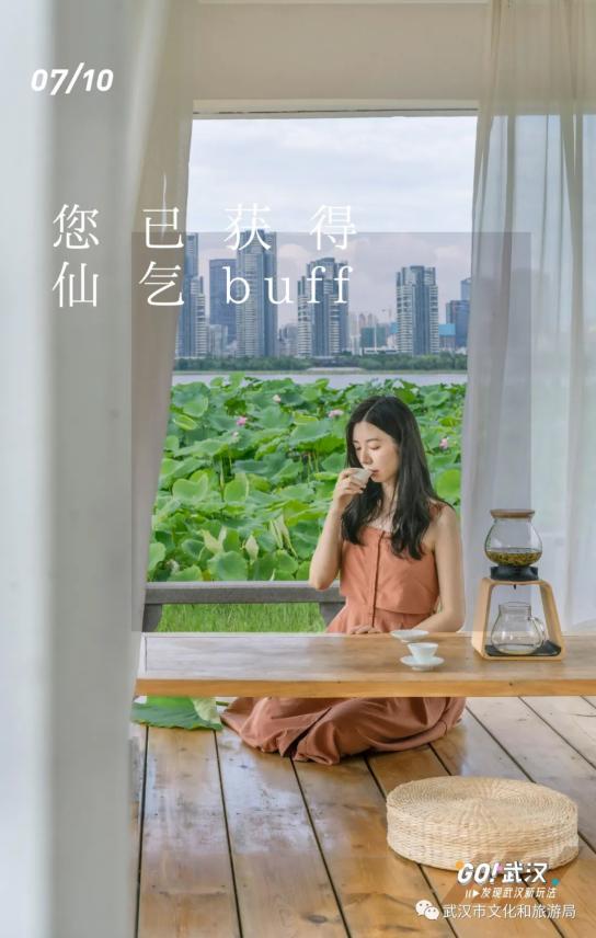 武昌沙湖公园内,有处“浮”于湖面的赏荷秘境,是座茶室,可360度坐揽荷花,诗意赏云。
