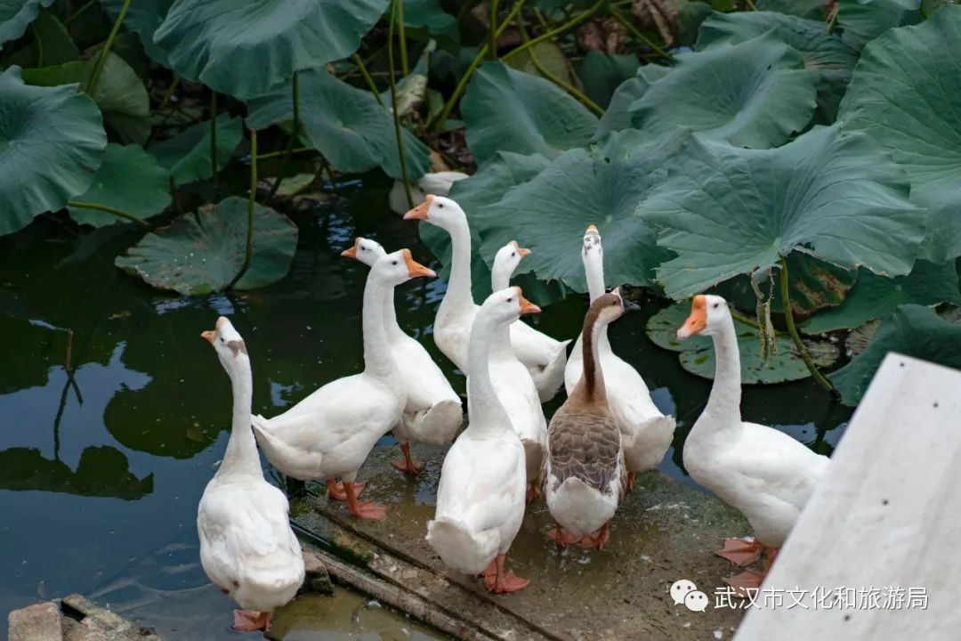 鹅棚没了,大白鹅们还在,晃着圆润的身子下水玩耍,却被荷叶团团困住,那模样可爱极了。