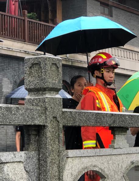 雨越下越大,由于担心撑伞会分散精力,消防员们冒着雨现在码头边观察江中情况。这时,几位阿姨撑着伞靠近正在执勤消防员。“小伙子你别动,阿姨替你撑伞,你管自己工作就好。”不容消防员们拒绝,阿姨们撑着伞站在消防员们的后方。暴雨持续了1多小时才渐渐小下去。“她们一直替我们撑着伞,直到雨几乎停了。”一名消防员感动地说,这一个小时里,替他撑伞的阿姨几乎全身都湿透了。“雨伞下的大部分位置都让给了我。”