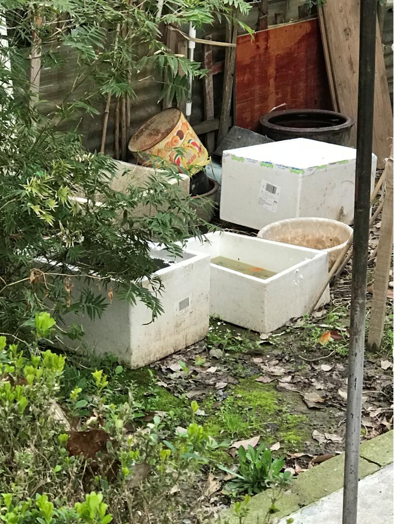 如果居民家院子里和院墙外的积水容器堆积的跟下图一样,那么这个区域的布雷图指数就会很高,也会不断的有成蚊羽化飞出,一旦有病人(境外归来)进入该地区,就会有可能通过蚊虫的叮咬造成疾病的传播。