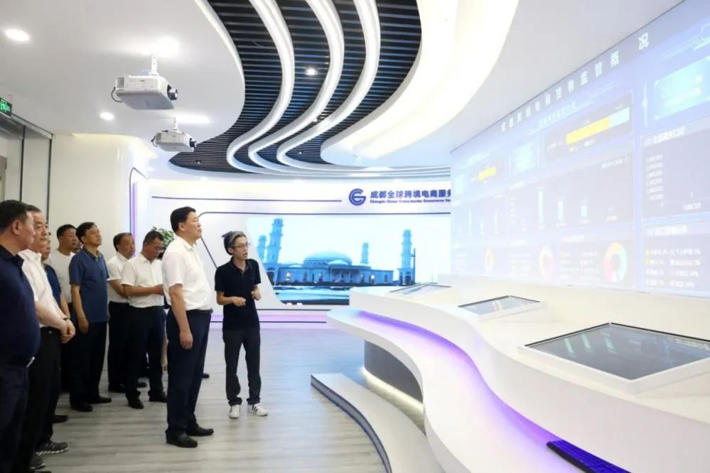 7月9日上午,天水市委副书记、市长王军率天水市政府相关部门主要负责人一行赴成都全球跨境电商服务资源中心考察我市跨境电商相关工作,市政府办公厅副主任吴玮骐,市商务局副局长、中国(四川)自由贸易试验区成都管理委员会常务副主任(兼)朱容陪同考察。