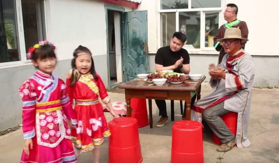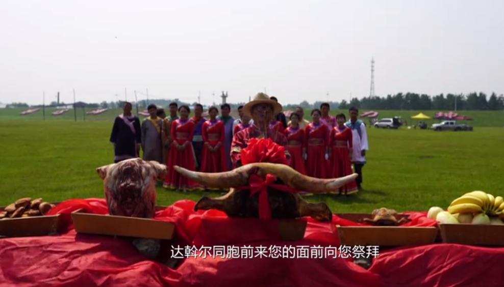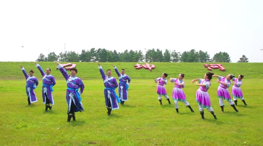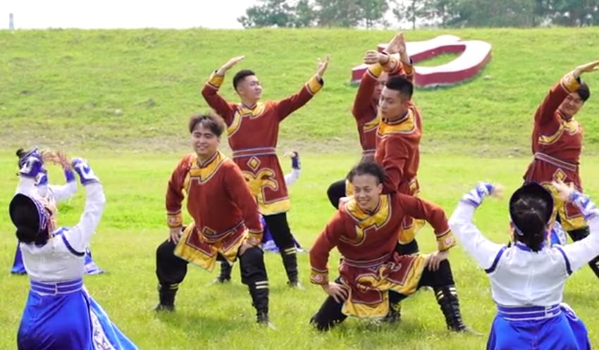 在坤河乡坝外草原,达斡尔族村民表演传统“哈库麦勒”舞蹈等节目来庆祝节日。