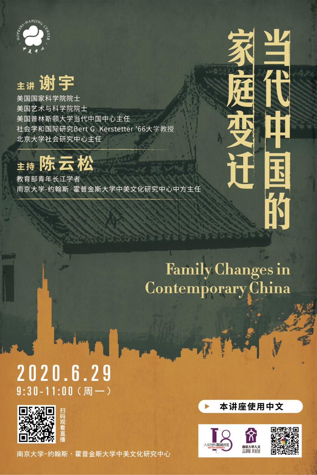 谢宇教授是著名的社会学家、美国两院院士、普林斯顿大学当代中国中心主任、北京大学社会研究中心主任。他在社会分层、研究方法与统计、人口统计学、科学社会学和中国研究等领域建树颇多。近日,南京大学-约翰斯·霍普金斯大学中美文化研究中心邀请他主讲“当代中国的家庭变迁”。此次讲座在Zoom平台、Bilibili网站和“学术志”公众号同步直播,有超过三万名观众参与。