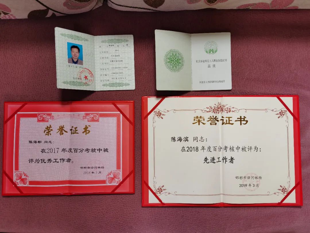 就是在这样的环境和条件下,老陈在兼顾工作和照顾妻子的同时还进修学习了林场技术人员初级工、中级工、高级工的晋升考级,并且连年评为林场先进工作者。