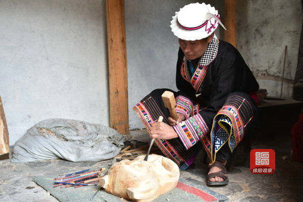 嘎泥早自2001年创办白马人艺术团,曾经获得多项全国奖,她于2012年灾后重建吉祥白马艺术团,带领寨子里的青年传承发扬民族文化。之后,她带着她的团队返乡创办精品民宿,带动发展家乡旅游脱贫致富。今年“五一”期间,白马部落民宿里天天客满。“感谢政府修建九绵高速公路,等这条‘天路’通了,来的游客就更多了。”畅想美好未来,嘎泥早那双清亮美丽的大眼中写满了希望。
