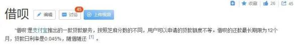 “借呗”是支付宝推出的一款贷款服务,按照芝麻分数的不同,用户可以申请的贷款额度不等。借呗的还款最长期限为12个月,贷款日利率是0.045%,随借随还。