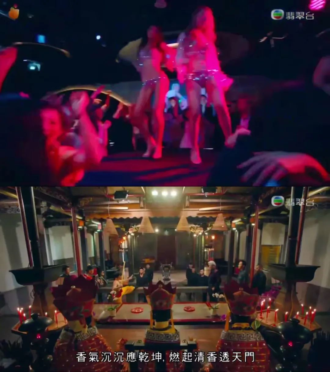 酒池肉林与黑帮祭庙并行,两个见不得光的世界交映。