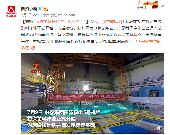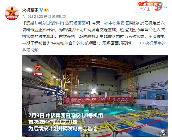 新浪微博@CGTN记者团:【#田湾核电站#5号机组首次装料】