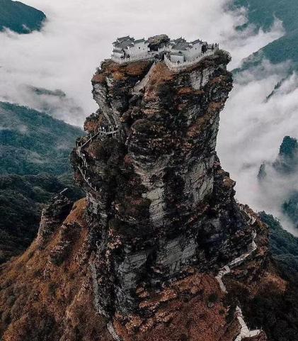 在贵州铜仁市梵净山上,最老最险的那个顶,海拔高达2000多米,陡峭异常,然而在这山顶上竟然有一座庙。