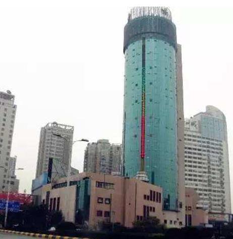 贵阳广播电视中心大楼,以天蓝色玻璃作为温度计玻璃体,中间留一条狭长细缝作为温度计中的“水银”,刻度标注零下二十到零上四十度,红色停在哪个位置,即表示当时温度,正所谓“走过路过,气温不要错过”。