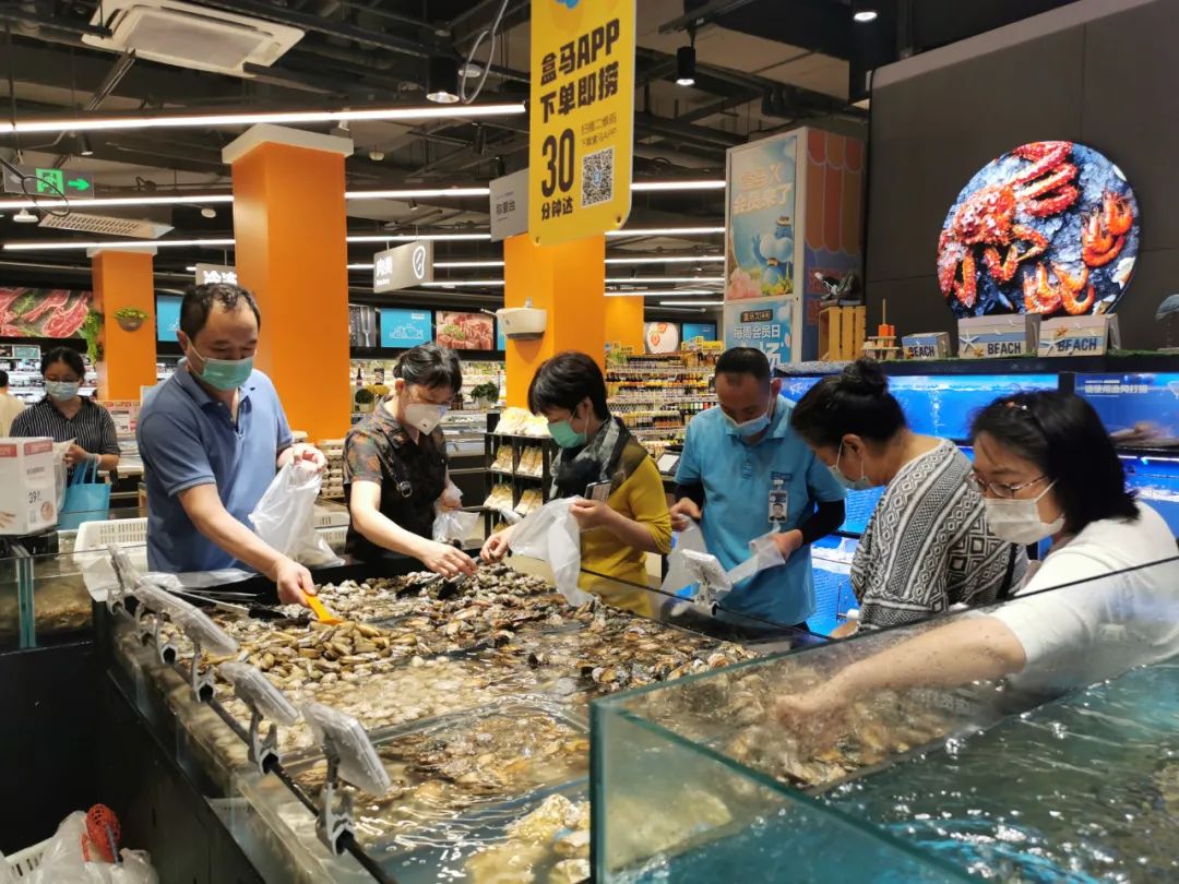 与很多社区生鲜店不同的是,盒马mini中设有活鲜区,并保留了盒马“边逛边吃”的特色,在有限的店面里,安排了一个可容纳十人的就餐区。同时,门店还提供周围1.5公里半小时送达服务。记者在现场看到,开业不久的盒马mini和平里店客流量较大,顾客测量体温、出示健康宝后可进入店内。