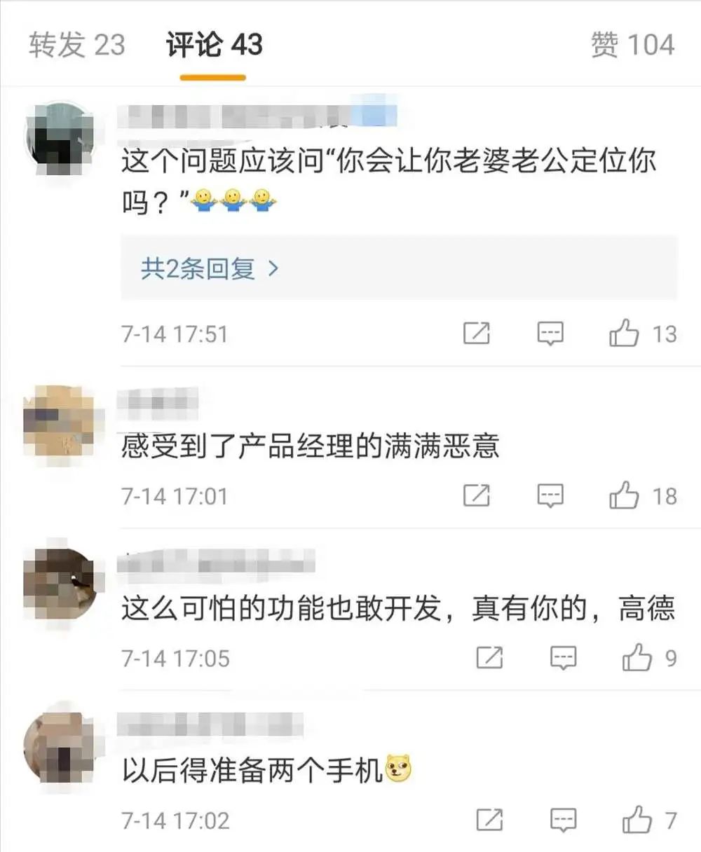 很难说有多少人看到父母或者配偶去了不常去或者很可疑的地方,会在高德地图上直接按通话功能。在正常亲属关系支撑的隐私距离下,面对这种情况更多是在微信上扔下截图,问问缘由。