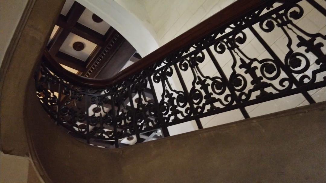 最亮眼的是馆内自带复古滤镜的旋转楼梯,流线造型,镂空的设计,扶手用的是柚木及硬木拼板,楼梯上留下了历史沉淀后的痕迹。