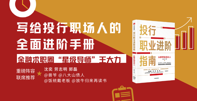 那么,《投行职业进阶指南》这本书,你可以读一读。这本书不仅能领你“进门”,也替你想到了在投行这条路上前进时可能会遇到的各种问题,并提供了真诚实用的建议。