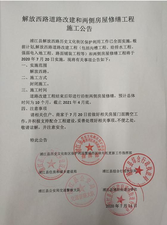 请相关住户、商家于7月20日前做好相关房屋门面腾空工作,并积极支持配合工程建设,妥善处理好相关事项。不便之处,敬请广大群众谅解,并注意安全。
