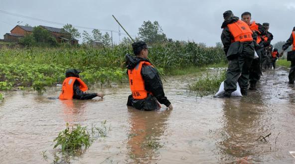 老观圩堤坝为铜陵市倒数第二道防线,一旦溃坝,将严重危及到铜陵市城市人民群众生命财产安全。据了解,老观圩堤坝警戒水位13.5米,截至14日水位已达到14.8米,14日下午,武警合肥支队官兵前往胥圩乡江心洲方向运送人员物资。