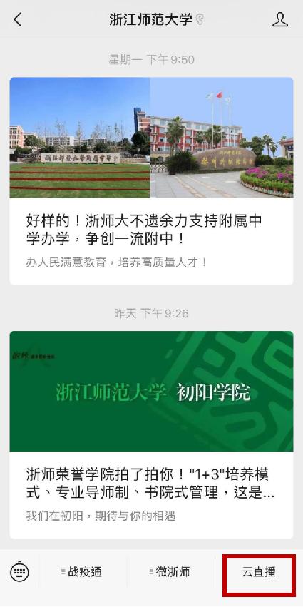 点击主页面菜单栏“云直播”直接进入