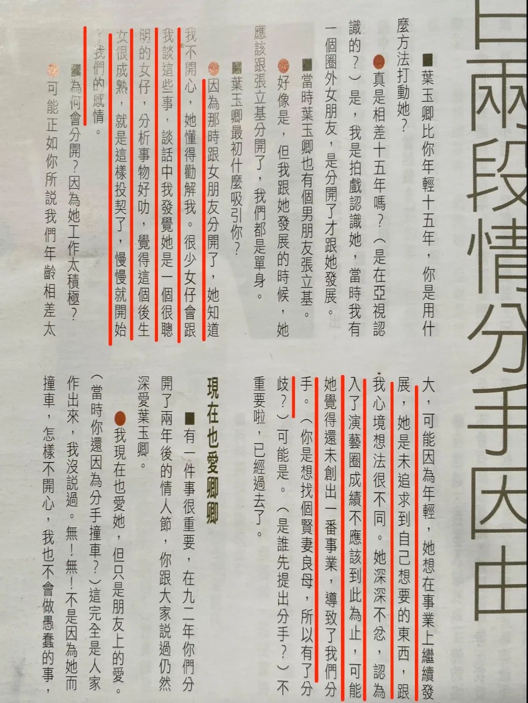 当时她还是一个一心挂念爱情的小姑娘,在1992年大红后接受郑裕玲采访时,她也说自己是一个喜欢谈恋爱的人,而且一出道就谈恋爱。