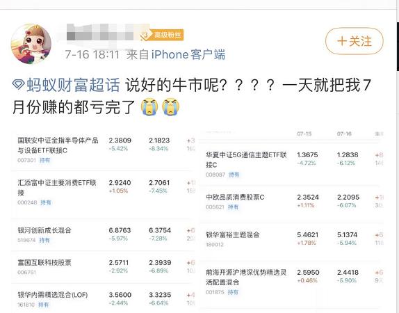 发生这样的状况估计与7月16日的A股大跌相关。狂奔的疯牛以意想不到的大跌踩了急刹车!7月16日A股三大指数急跌幅度均在5%左右,贵州茅台盘中大跌9%,五粮液跌停,消费、科技、医药三剑客重挫,两市成交额连续9天突破1.5万亿。