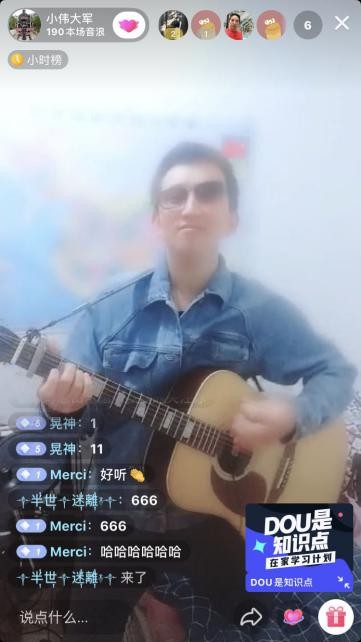 “大家一定睡床板硬一点的床啊,好多人反映睡软床和坐软沙发会......”直播间里一边唱歌一边讲养生的,估计也就只有他了。从年后回到北京到正月十五这一天,大军已经接连在抖音上直播了六天,有时身穿白大褂普及养生知识,有时戴墨镜穿着牛仔服唱摇滚。每一次直播,大军都给自己定了不同的养生主题,从人体的体温讲到了腰椎间盘突出。每次直播开始前,他都会在朋友圈发预告,附一张抖音直播间的二维码。来看直播的基本都是捧场、助人气的朋友和同学,几乎没有“路人粉”,而直播间的人数也一直都固定在六七人。