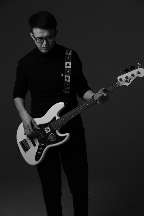“我当时本来是想奔着打鼓去的,但是发现我手脚还不太协调。后来当时乐队正好缺一个贝斯手,他们就问我要不要试试,说我块儿大点,能拿得动。当时贝斯是啥我也不知道,拿来之后感觉这个声音还挺好听的,有点像我,都是低沉的声音。”