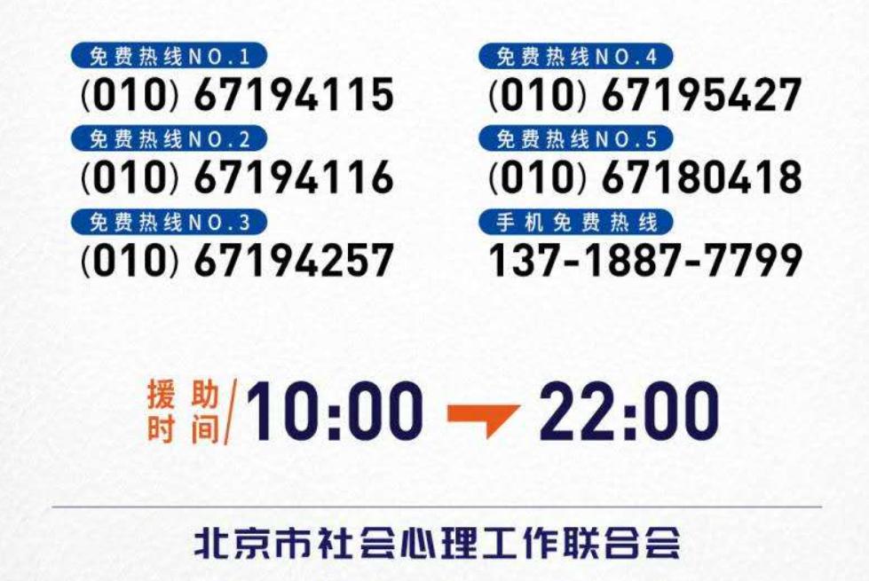 北京开通6条免费心理服务热线