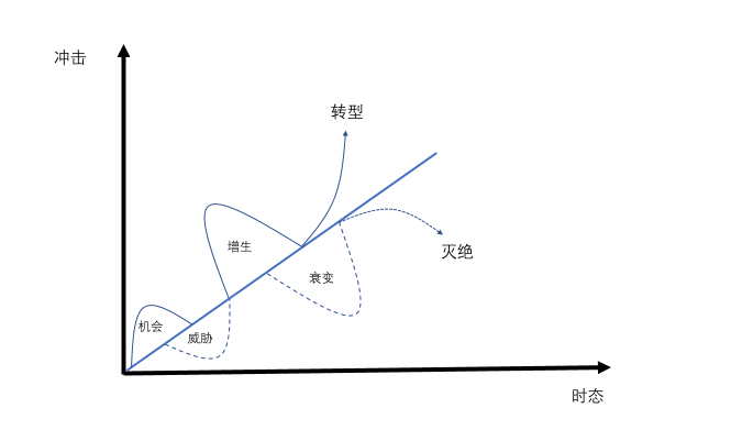 4)如果顺应这个混沌变化规律,组织转型。如果违背,系统寂灭。