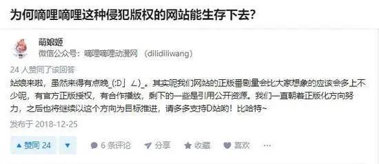 在2018年6月获得5000万融资之后,D站表示已经拿到一些官方正版授权,将继续朝着正版化方向努力。