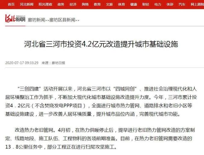 河北省三河市投资4.2亿元改造提升城市基础设施