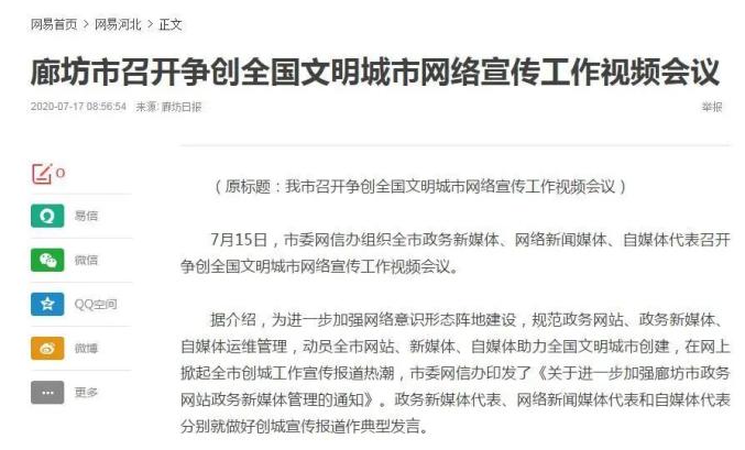 原标题:《重点网络媒体聚焦廊坊“创城”(六)》