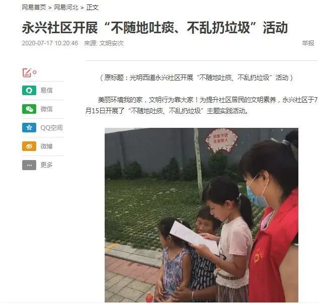 永兴社区开展“不随地吐痰、不乱扔垃圾”活动