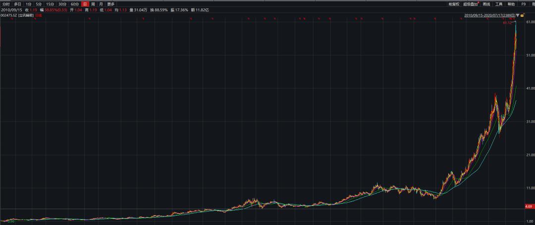 自2010年上市以来,立讯精密股价已经上涨了超50倍。