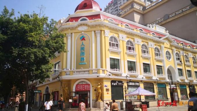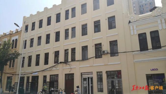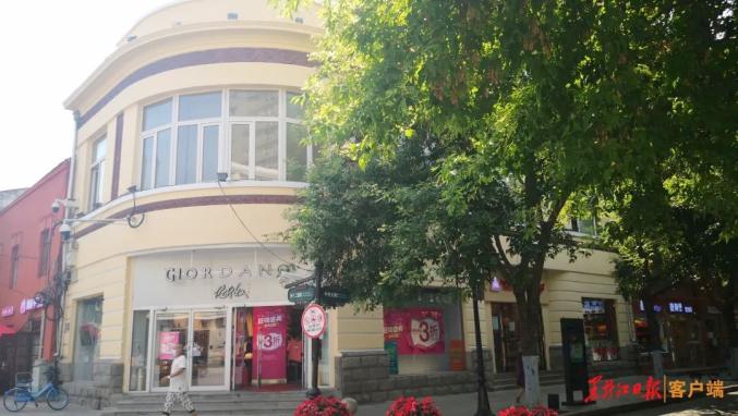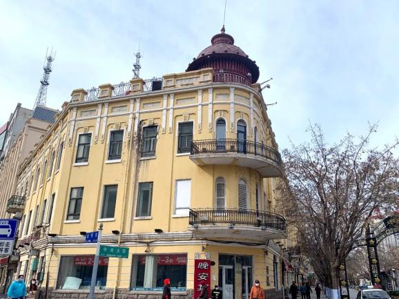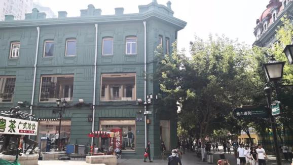 该建筑建成于1914年,原为俄国商人伊·雅·秋林开办的秋林商行道里分行,砖木结构,仿文艺复兴建筑风格。该建筑首层以连续的腰线分割,顶部檐上做间断的女儿墙,上面饰以巴洛克式浮雕,建筑顶部的转角突出,屋顶轮廓富有变化,檐口下有精美的装饰造型。