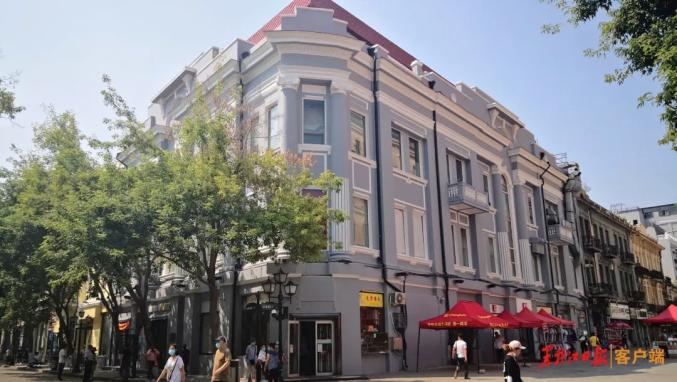 7月13日,记者来到中央大街,看到施工期间包裹在建筑外的防护网等都已撤除,整饰一新的百年建筑展露“真容”。