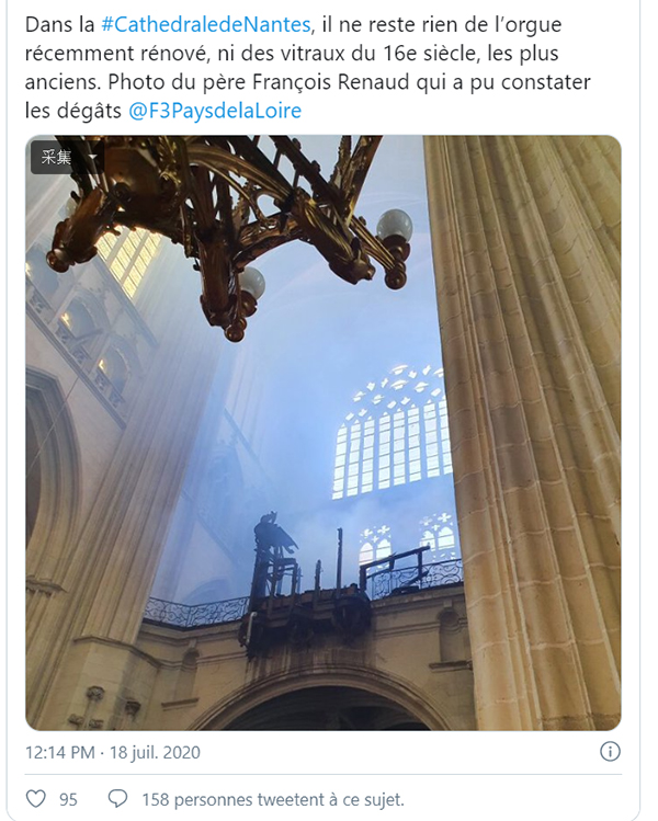 法国南特大教堂起火,400岁大管风琴被焚毁