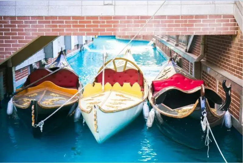 一条长长的小河贯穿了整个“小镇”,乘坐独具特色、造型别致的威尼斯木质尖舟,在阳光的照射下,感受波光粼粼的美丽风景也不赖。到这里游玩、留影,完全可以随心所欲地怎么拍就怎么拍,任性展现你的“度假范”。