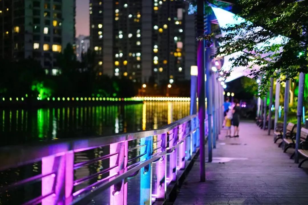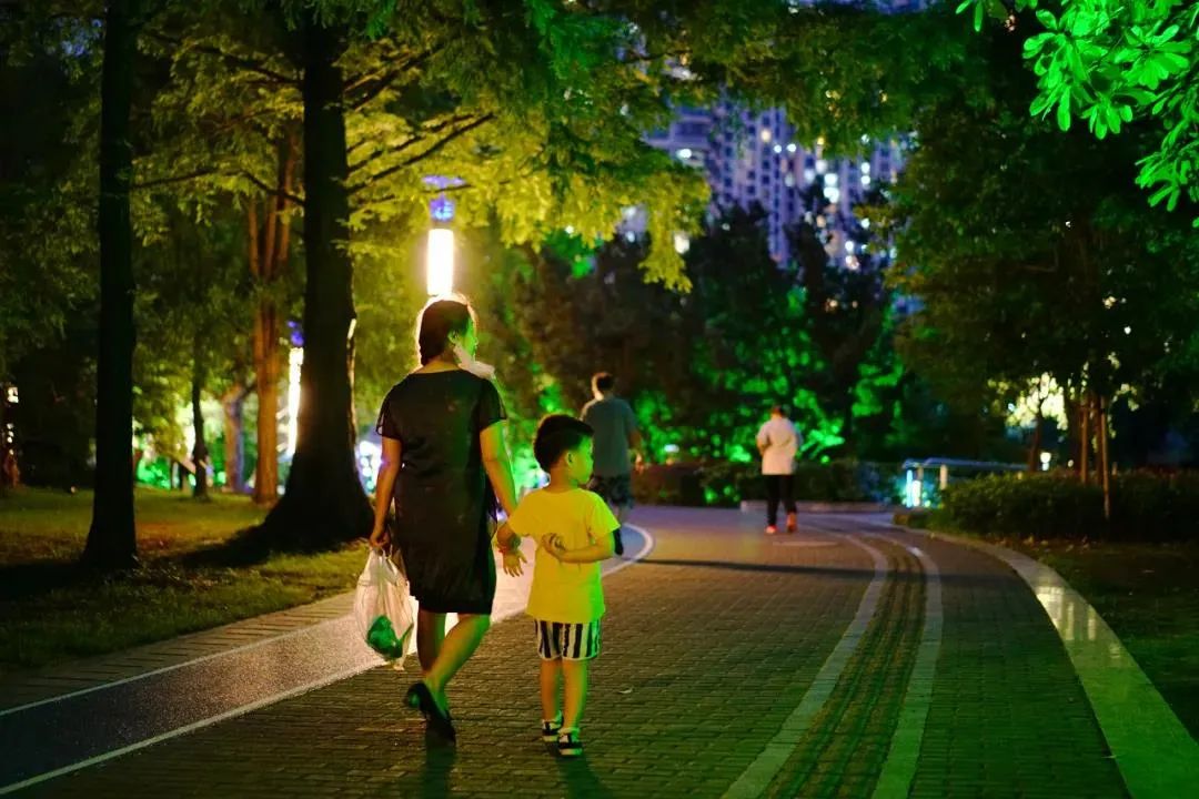 夜晚,站在湖边吹吹晚风,还能来场夜跑锻炼锻炼身体。如果住得近,非常推荐一家三口饭后来这里散散步、看看夜景。