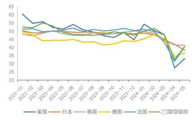 图1 全球制造业供应链主要供给国的制造业PMI