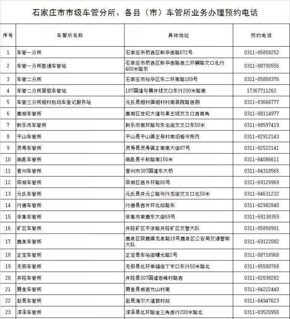 各车管所地址及预约电话