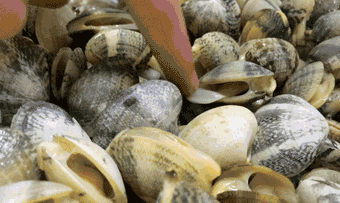 花蛤在被翻动时是不会开壳的,我们要挑壳是完整的,且紧紧闭合住的花蛤。